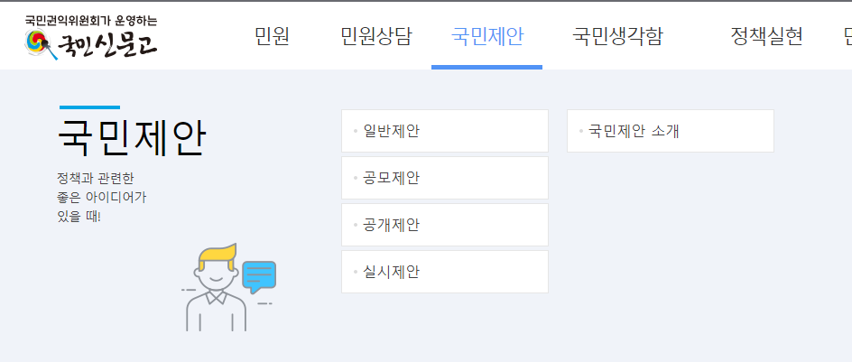- 행정 처분에 대한 민원을 내는 민원·제안 코너,