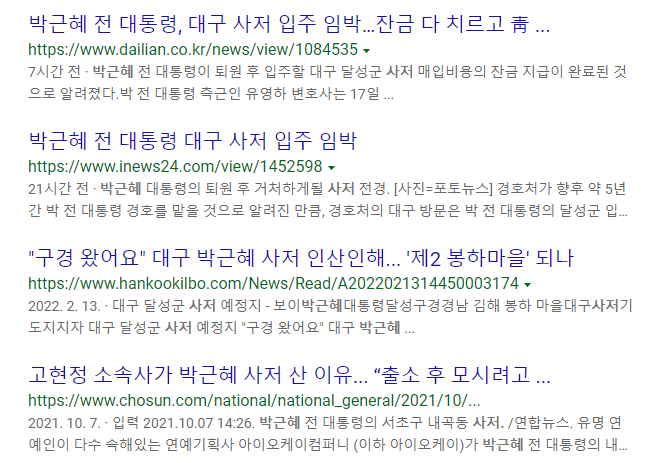 박근혜 전대통령이 특변사면을 받은 후 고향으로 복귀하는데 있어, 노무현대통령등 전 대통령의 사저를 대하는 언론환경이 너무도 많이 다른점이 있어 간단하게 비교해 본다.